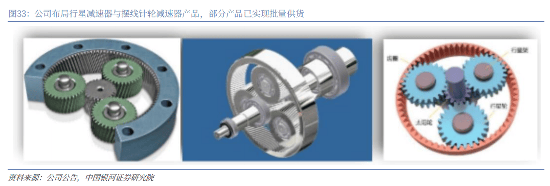 人形机器人:减速器批量供货,远期市场空间广阔:减速器是人形机器人旋转关节的核心部件,由于各类产品各具性能优劣势,谐波、行星、RV、摆线减速器在人形机器人上均具备应用前景,当前各主机厂技术方案尚未收敛,在减速器应用上呈现多元化。公司主要布局精密行星减速器与摆线减速器,其中部分产品已实现批量供货,由于行星减速器的下游应用场景广泛,市场竞争格局较为分散,当前人形机器人产业发展由中美企业引领,且特斯拉与国内产业链形成深度绑定,我们认为人形机器人产业的蓬勃发展为国内企业在减速器市场推进国产替代提供了良好的机遇,公司有望凭借在精密制造能力上的技术积累以及优质客户群资源在人形机器人减速器市场持续开拓。