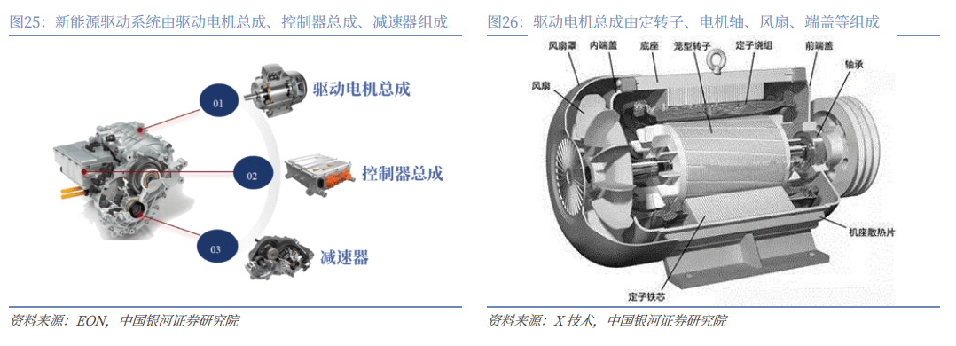 公司拓展定转子、电机轴、减速器等新能源驱动系统核心部件,形成汽车零部件业务多维成长动能。新能源汽车驱动系统主要由驱动电机总成、控制器总成、减速器组成,其中驱动电机总成主要由定转子、电机轴、端盖、风扇、差速器等组成,公司基于自身精密制造能力在差速器之外拓展了定转子、电机轴、减速器等新能源驱动系统核心部件,为公司汽车零部件业务带来多维成长动能。其中公司电机轴产品为空心电机轴,采用旋锻一体成型工艺,机械性能更优,抗弯矩和抗扭矩性能更强;行星减速器产品为同轴行星减速器,具备体积小、扭矩大、效率高、传动比可调等优点,公司产品具备一定的技术优势,市场拓展前景广阔。