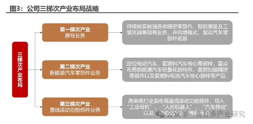 把握战略发展机遇,三梯次布局结构清晰。为抓住新能源汽车产业迅猛发展机遇,以及国家大力推动“工业母机”“高端装备制造”等战略产业的契机,公司充分发挥“精密加工为特长、铸造产业为支撑、智能装备为驱动”的产业联动发展核心竞争优势,构建紧密相连、无缝对接、齐头并进的三梯次产业布局,分别为原有精密零部件业务、新能源汽车零部件业务和直线滚动功能部件业务。面向不同梯次产业,公司制定了不同的发展规划与目标,助力公司长足发展。
